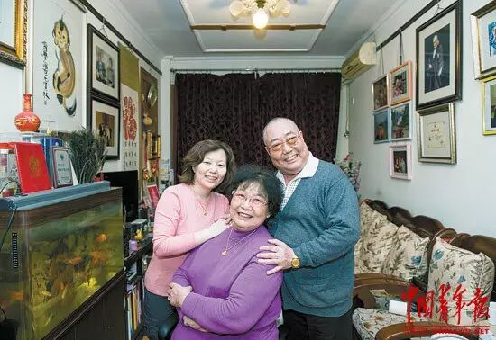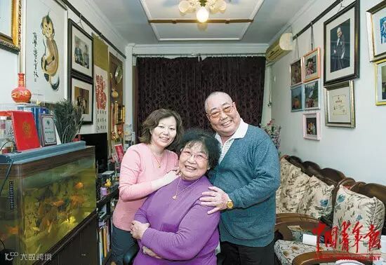 北京・三里屯の自宅で、袁少海さん(右)と妻、娘。袁少海さんの父親は有名な京劇役者の袁世海で、父親の影響と薫陶を受けた袁少海さんは小さい頃から京劇好きで、よくコミュニティーや街道の公演に参加した。