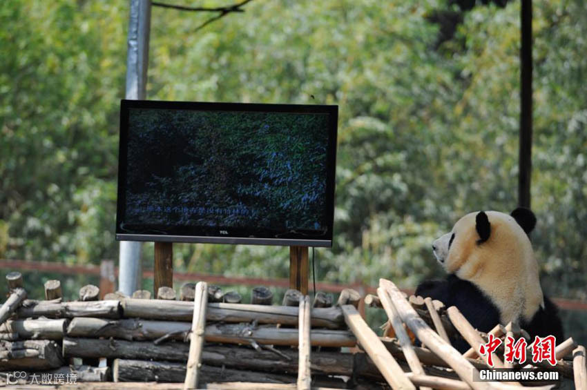 4月14日,正在看电视的大熊猫思嘉。近日,在云南野生动物园寄养的大熊猫美茜回四川后,单独留在昆明的大熊猫思嘉情绪低落,开始出现了许多反常举动。动物园想了许多办法,希望大熊猫思嘉能恢复正常。在6年前的5.12特大地震中,卧龙中国保护大熊猫研究中心严重受损,有3只大熊猫被送到到昆明寄养。