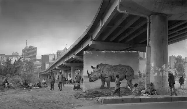 他用了两年的时间完成这个项目,将在非洲大草原拍摄的濒危绝种的动物,以1:1 尺寸的印刷在巨型展板上,摆放于这些野生动物原本的栖息地进行拍摄。
