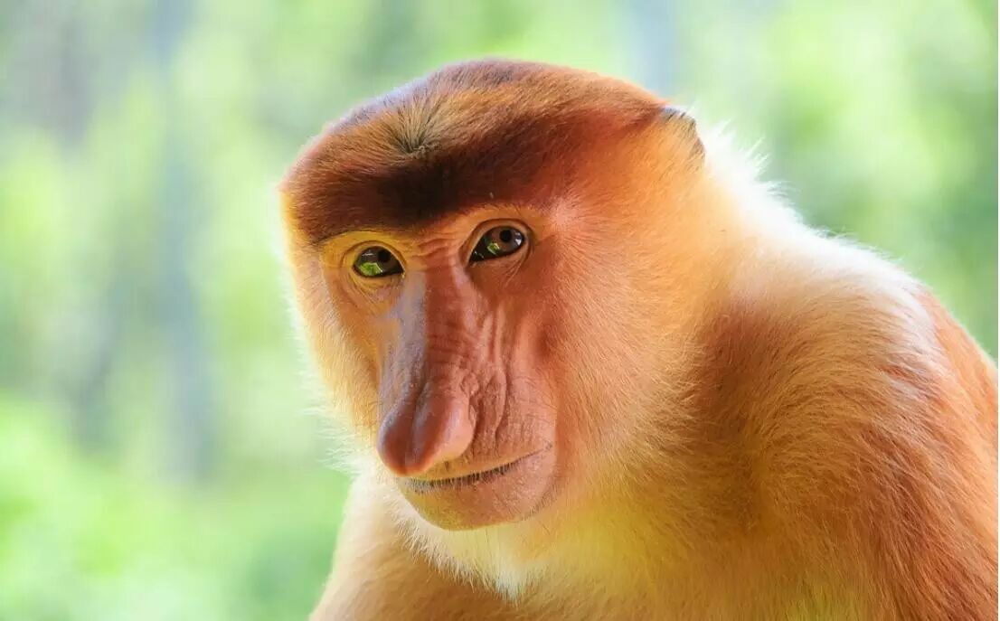 长鼻猴是东南亚加里曼丹的特有动物,是目前唯一发现的不属于反刍亚目却能够反刍的物种。雄性猴子随着年龄的增长鼻子越来越大,最后形成像茄子一样的红色大鼻子,激动的时候,大鼻子就会向上挺立或上下摇晃,而雌性的鼻子却比较正常。