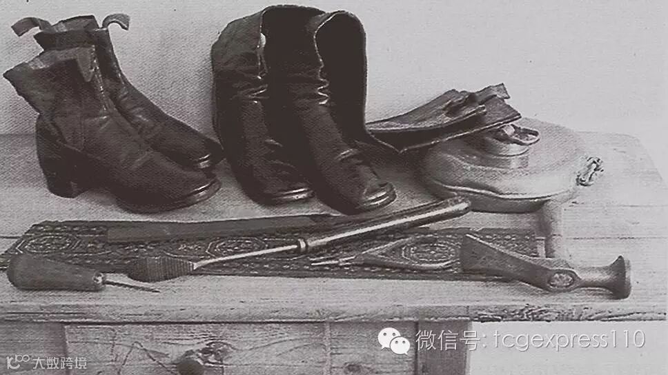 Сапожные инструменты и обувь, сшитая Львом Толстым制鞋工具和自制的鞋子