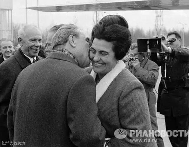 勃列日涅夫亲吻铁托夫人。