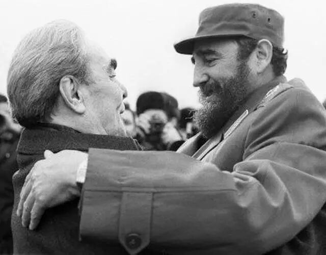 据说勃列日涅夫也想亲吻卡斯特罗,但卡斯特罗巧妙的利用雪茄躲过了。