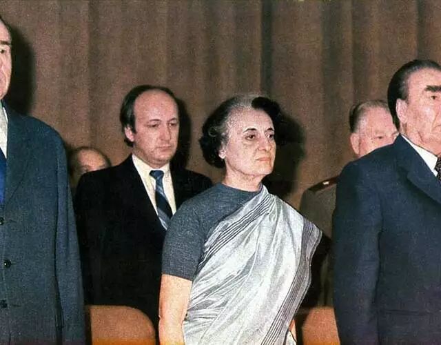 据说英迪拉·甘地也得到了勃列日涅夫的热吻。