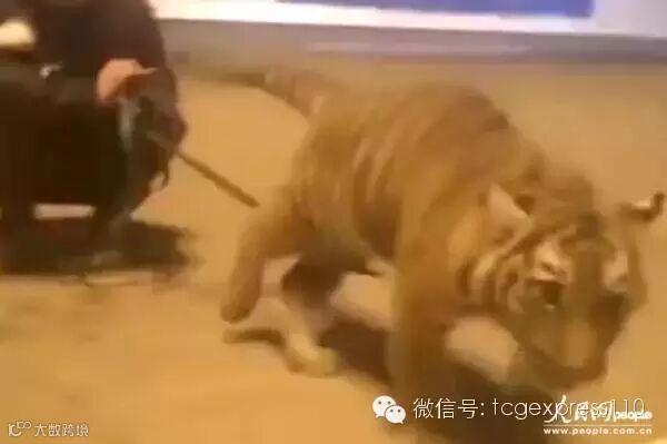 马戏团驯兽师醉酒后当街遛虎(视频报道截图)