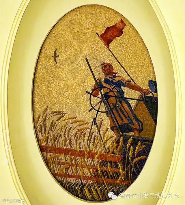 这幅壁画嘛,范主就不解释了。一只小鸟,一位工人,一张红旗,还有熟透的麦子,熟悉的配方熟悉的味道。
