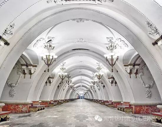 其中最出名的要算马雅可夫斯基站(马雅可夫斯基是苏联著名诗人,著有长诗《列宁》等作品),这个车站可以说是一个新古典主义造就的斯大林式建筑: