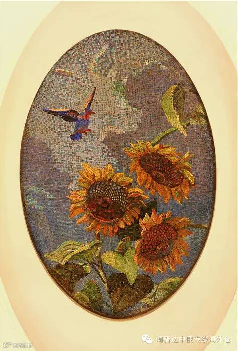 还有这个向日葵与鸟的壁画。