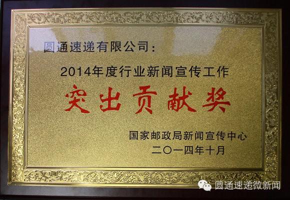 2014年10月21日,由国家邮政局新闻宣传中心组织召开的“2014年度快递行业新闻宣传工作座谈会”在沪召开,国家邮政局副局长王梅出席会议并讲话。会上,圆通速递荣获“2014年度行业新闻宣传工作突出贡献奖”。
