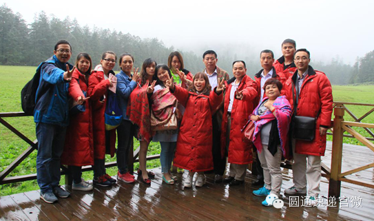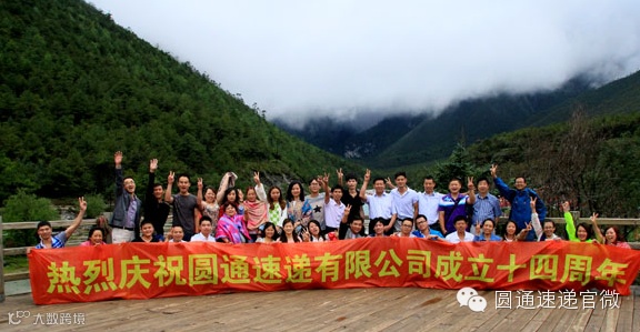 图为圆通速递网络优秀员工代表在云南丽江旅游时合影。