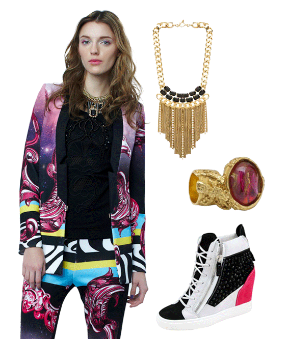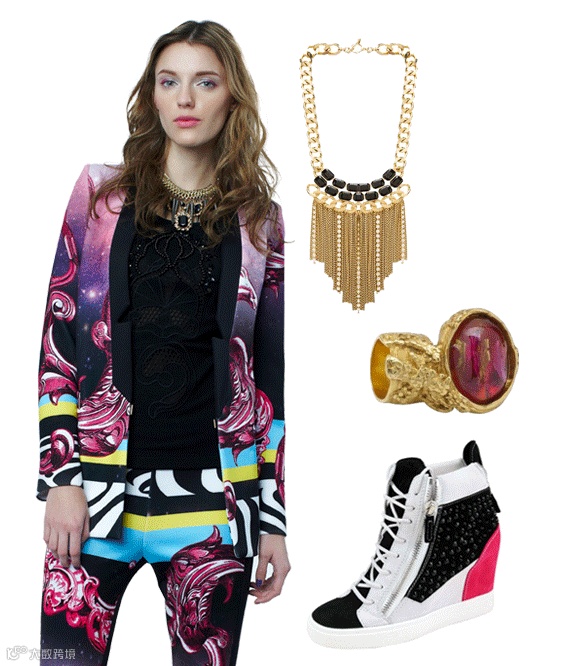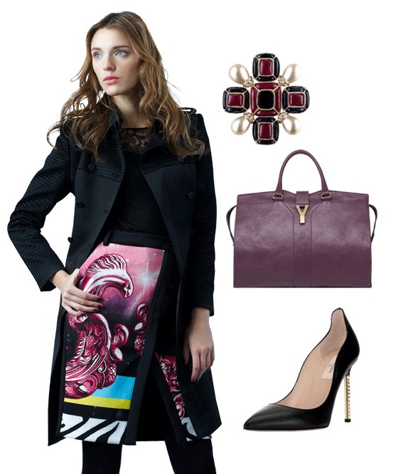 2014秋冬着一条星空未来感的印花半裙,科技时尚感十足。搭配一件简单的黑色风衣,既可以抵挡沉默了一个夏天的凉风,还能彰显一种干练的美。