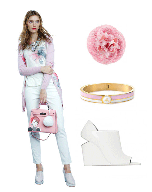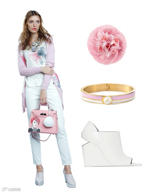 粉色胸针搭配针织长衫,粉嫩嫩的颜色,科技感的印花,精致的制作,为您的装扮添彩。