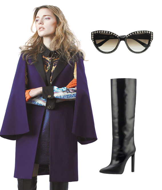 2、硬挺轮廓线条的披风外套,潮人必备单品,领部撞色拼接,浮夸造型却不失沉稳干练的设计。