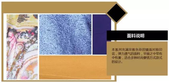 本系列充满宗教色彩的镜面对称印花,弹力透气的面料,华丽之中带有中性美,适合多种时尚穿搭方式款式的设计。