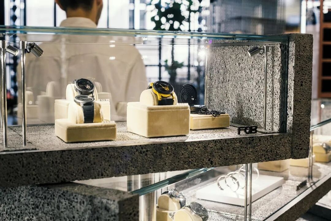 您可以在瑪黑區老佛爷皇家石英表鑑賞FOB PARIS