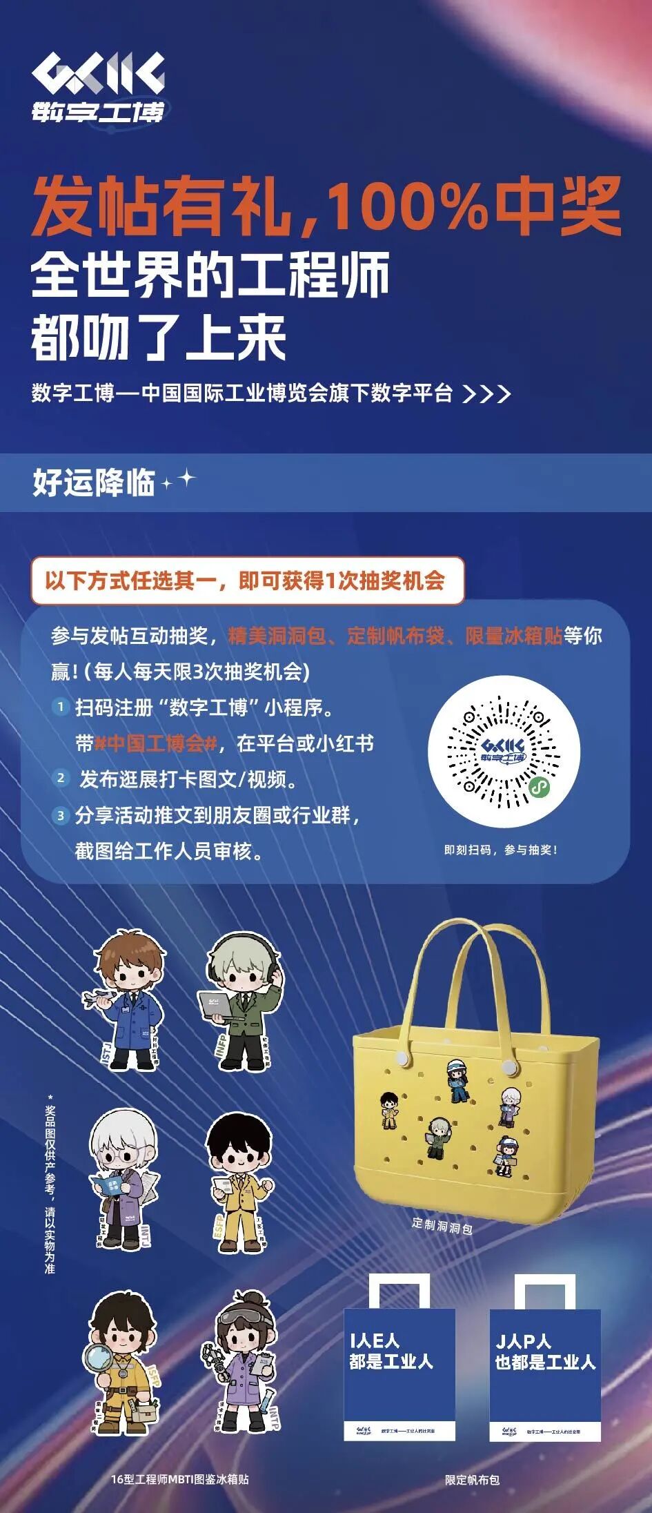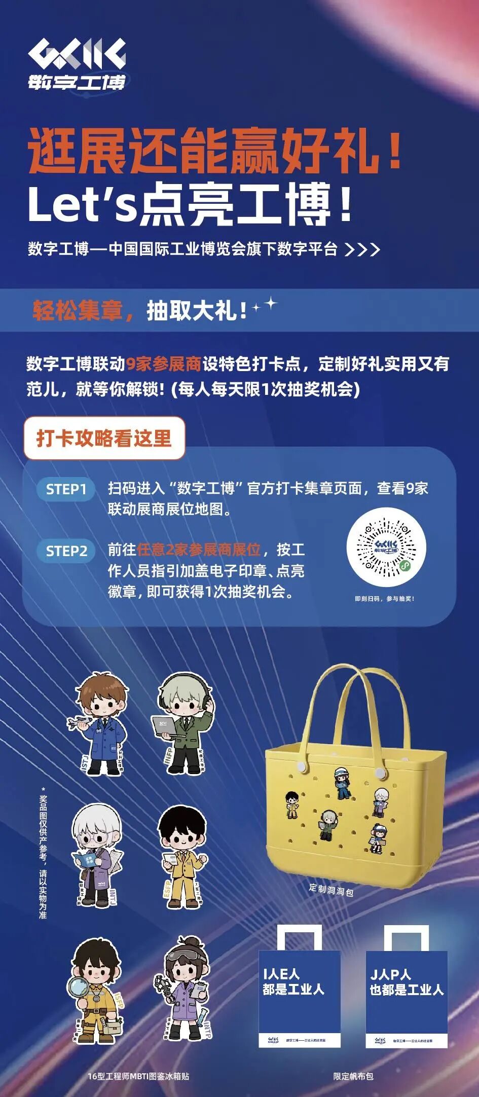 现场有身穿定制文化服的“工业社交体验官”,身背洞洞包,手举广告牌,与你互动、演示平台功能——他们就是你的“数字工博引路人”!