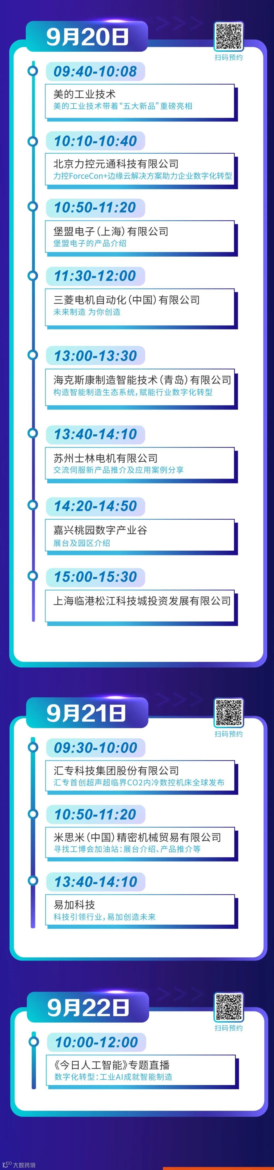 直播入口为“数字工博”平台,扫描下方二维码,或通过中国工博会官网、官方微信公众号、等渠道访问。