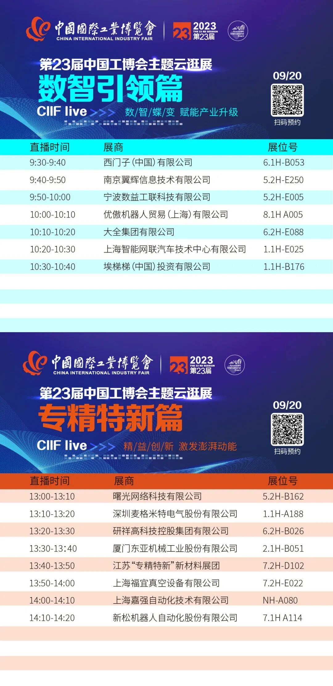 本届工博会关注工业制造业的高频词,策划直播节目,将围绕绿色低碳、数智引领、专精特新三条主题路线,分别于 19 日下午、20 日上午和20日下午,进行巡馆探营直播。