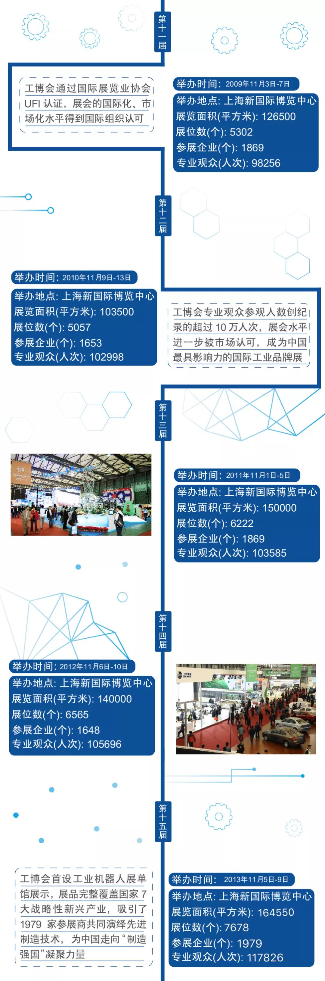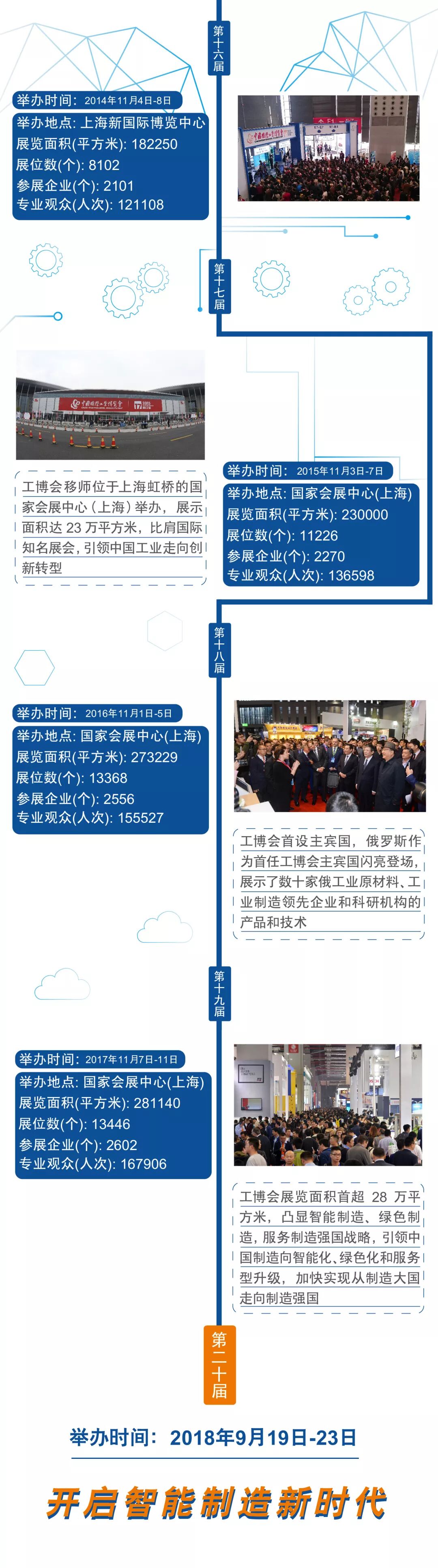 中国工博会自1999年创办以来,历经20年发展创新,通过市场化、专业化、国际化和品牌化运作,已发展成为通过国际展览业协会(UFI)认证、我国工业经济领域规模最大、功能最全、水平最高的展览盛会。一张图回顾中国工博会走过的20年。