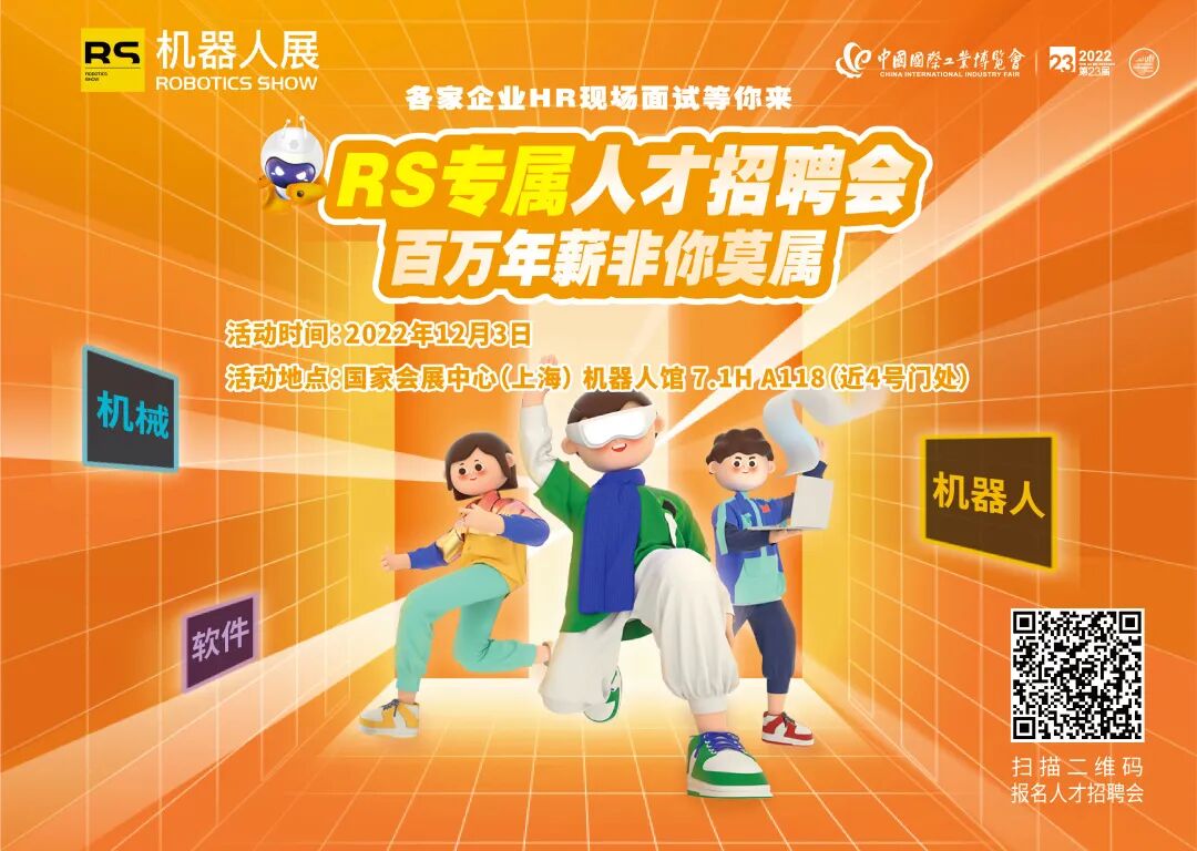 RS专属人才招聘会,由RS携手美的集团、遨博、艾利特、THK、ATI等二十余家国内外知名参展企业以及上海市机器人行业协会联合倾情打造,各家企业HR亲自上阵,现场对报名参会者进行一对一交流和面试;知名院校的机器人相关专业学生到场,进行宣讲和交流活动,开展为期一天高效的面向机器人、自动化领域社会人士与高校学子的招聘专场活动,切实有力地推动机器人产业的产学研用协同发展。