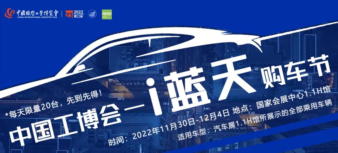 基于本届展会“智能、互联,赋能汽车产业新发展”的主题和往届“i蓝天购车节”的成功举办,活动主办方将继续回馈广大观众。今年“中国工博会—第四届i蓝天购车节”将额外补贴购车消费者1000元/台的回馈金额,每天限量20台,先到先得。适用车型:中国工博会-新能源与智能网联汽车展1.1号馆展示的全部乘用车。