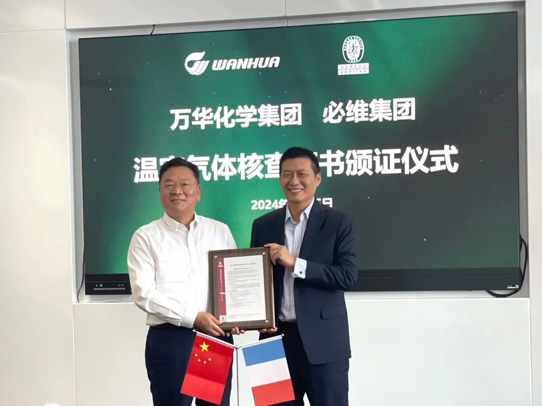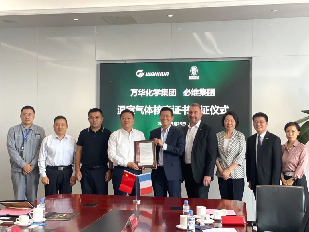 9月25日,必维集团(Bureau Veritas,以下简称“必维”)为全球知名化工企业万华化学集团股份有限公司(以下简称“万华”)颁发了ISO 14064温室气体核查声明,这不仅展示出万华在碳管理和减排方面的努力和成果,同时更加彰显了其作为化工巨头企业在推动行业可持续发展的责任和担当。万华化学集团董事、总裁寇光武先生,必维集团亚太区执行副总裁Surachet TANWONGSVAL先生,集团副总裁、亚太区市场和销售负责人Sebastian BUCA先生,大中华区及东北亚区高级副总裁韩晶女士以及双方领导嘉宾出席了本次在万华烟台总部举办的颁证仪式。