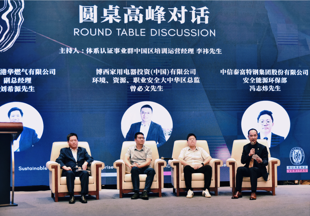 此外,本次峰会的圆桌高峰对话特别邀请到了马鞍山港华燃气有限公司副总经理刘希源先生、博西家用电器投资(中国)有限公司环境资源职业安全大中华区总监曾必文先生和中信泰富特钢集团股份有限公司安全环保能源部冯志炜先生,和必维集团中国区培训运营经理李祎先生一同就“如何在特有领域中,践行和落地ESG和碳中和目标”进行了热烈的讨论。结合国情、对标国际,从低碳转型以及高质量发展两个方面展望可持续发展的远景、详谈战略布局的开展和落实。