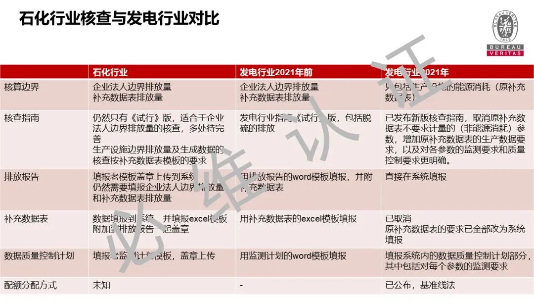 在碳核查方面,石化行业和电力行业相比有何不同?