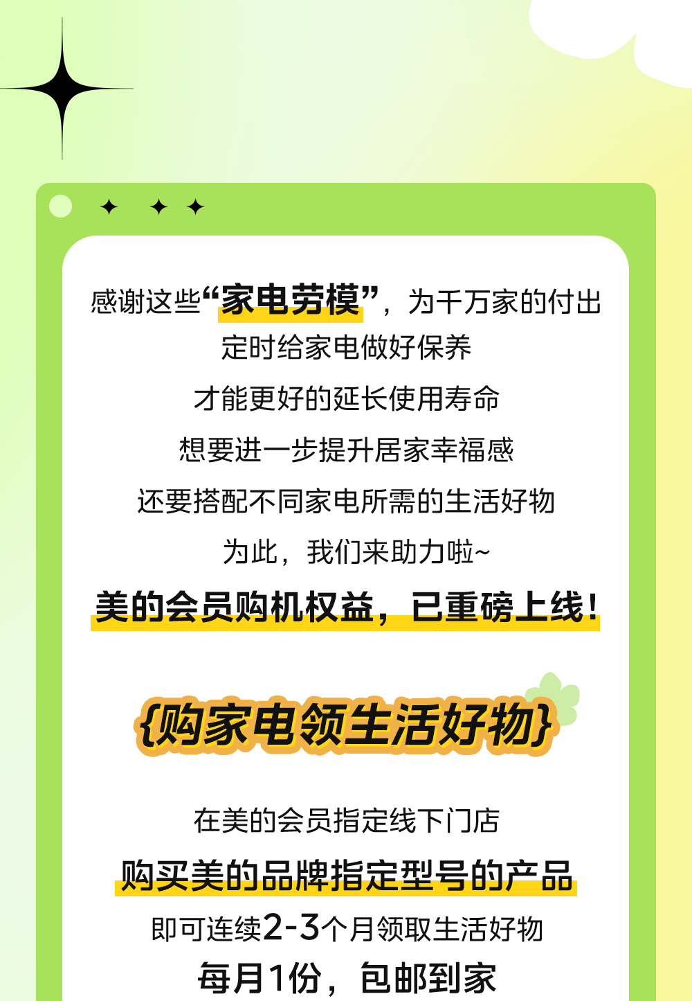 美的集团官方会员服务平台,本平台于2025年3月暂停运营,功能和服务整体迁移至“美的官方"公众号,请搜索并添加关注,体验更多会员权益和福利。