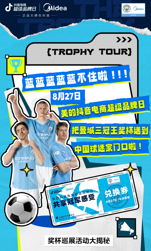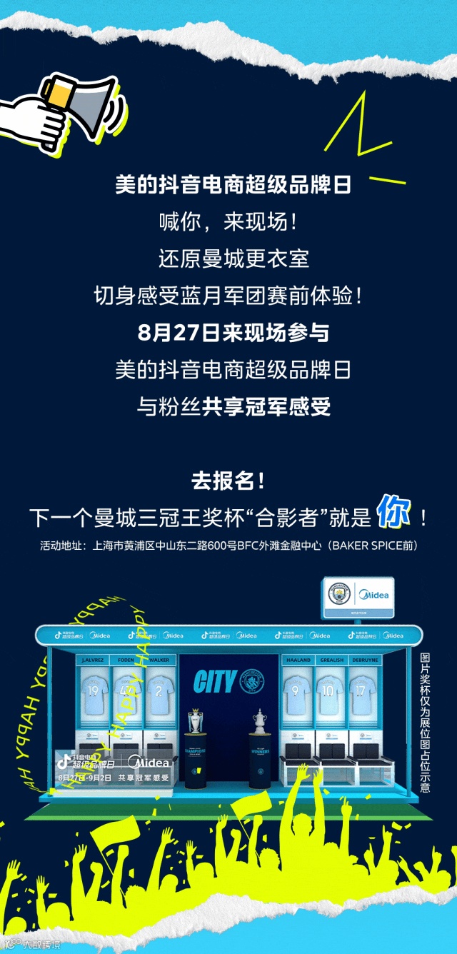 导读:美的抖音电商超级品牌日,来看曼城冠军奖杯!