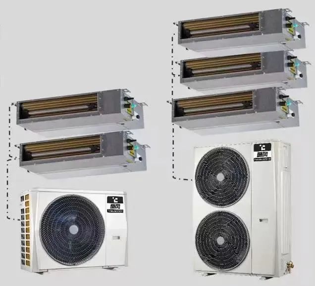 俗称“一拖多”,顾名思义是一台室外机连接多个室内机。它与风管机最大的区别在于一台室外机可承载的室内机数量。