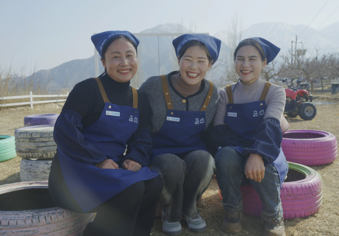 甘肃东乡的乡村女性阿英(中)因为“心力”成为明星民宿管家,同时也鼓励了更多姐妹出门工作