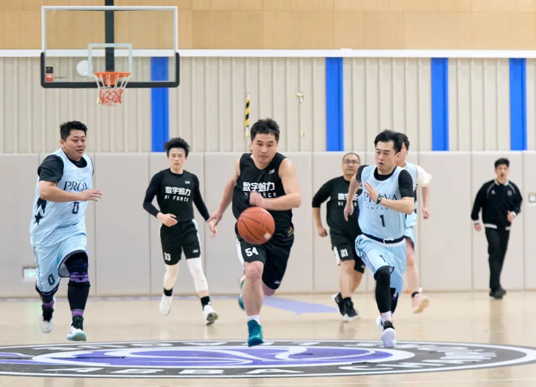 哨声一响,“数字蚂力队” 迅猛进攻,突破、传球、投篮一气呵成。“珀莱雅队” 也不甘示弱,快速调整阵型,展开顽强防守。双方你来我往,哨声响起,上半场结束,“珀莱雅队” 稍处劣势。