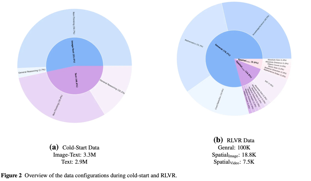 高质量的数据是模型能力的基石。由于缺乏兼具通用和空间推理的训练数据,团队首先设计了一套多阶段数据合成与管理流水线,共生成了294.2K高质量样本。