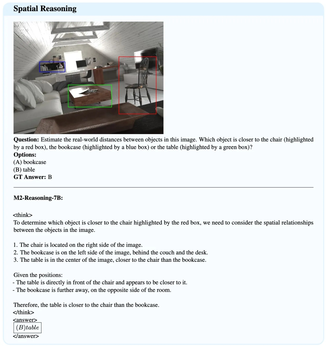 M2-Reasoning-7B的成功,清晰地展示了一条通往更强MLLM的有效路径:通过高质量、目标导向的数据构建和精细化、动态化的训练策略,可以有效弥补现有模型在特定认知维度(如空间推理)上的短板,从而实现更全面的智能。