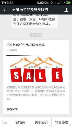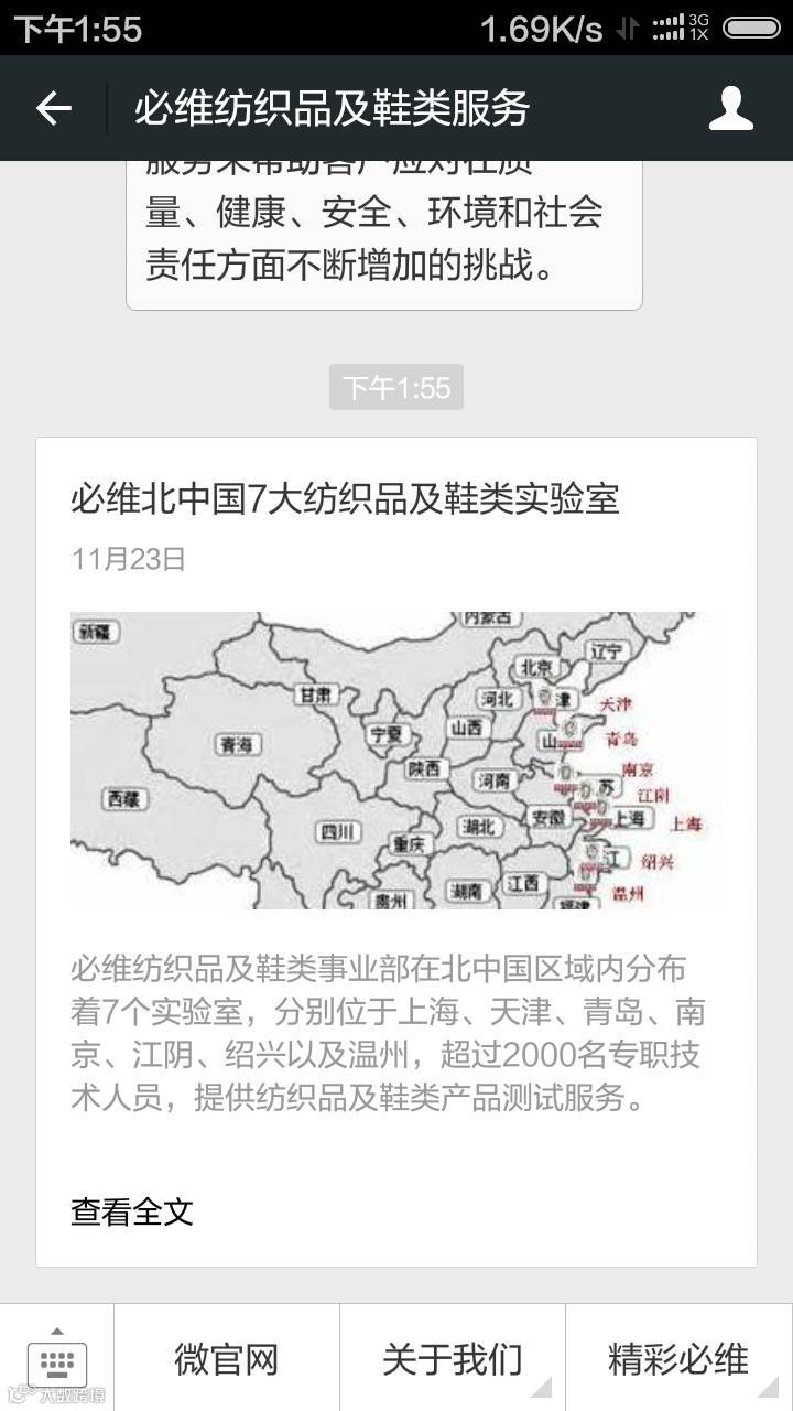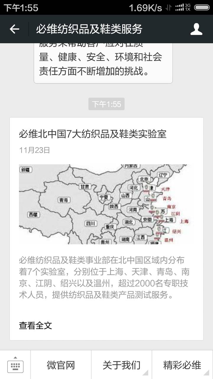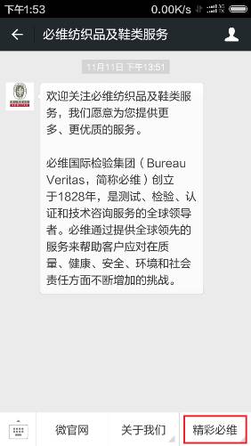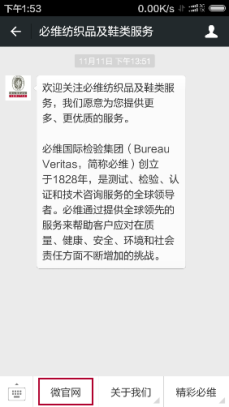 STEP1:进入必维纺织品及鞋类服务微信公众号“必维纺织品及鞋类服务”