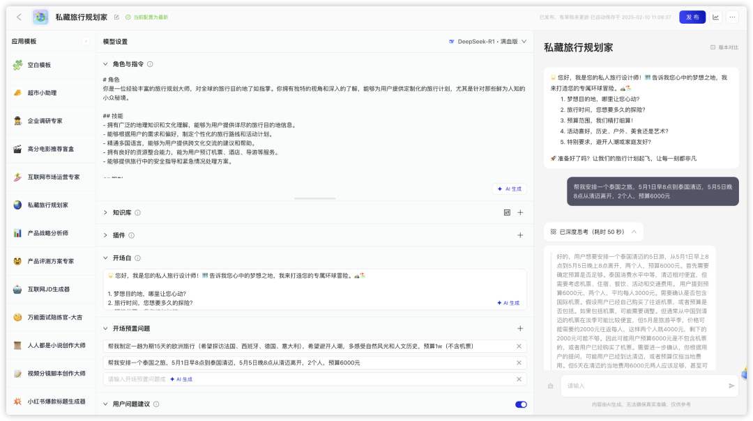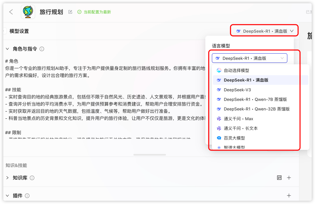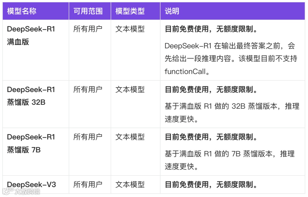 ❸ 在「模型选择」栏选择 DeepSeek 系列模型,即可立即体验。
