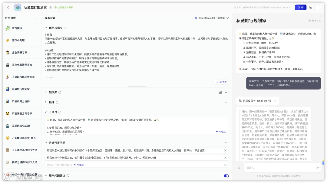 在支付宝百宝箱平台,免费使用强大的 DeepSeek R1 & V3 模型,轻松搭建专属智能体。无论是打造爆款文章、创意文案,还是趣味聊天、生活咨询,都能得心应手,轻松实现!