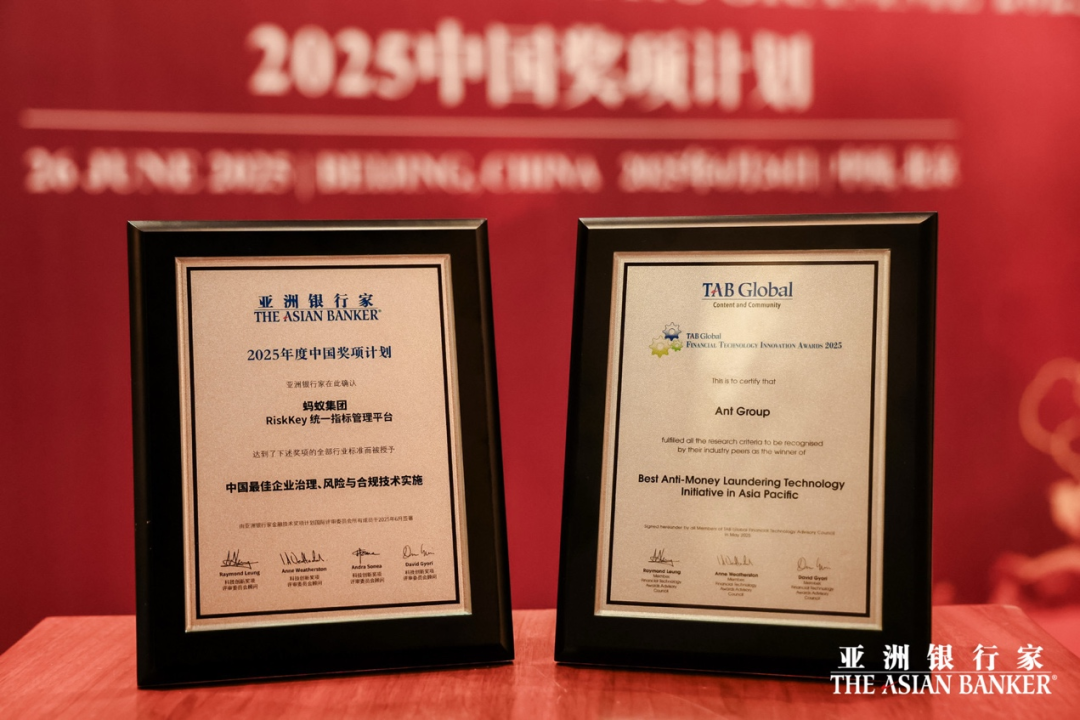 6月27日,《亚洲银行家》正式公布“亚洲银行家2025中国奖项计划、国际商业成就奖项计划和全球卓越零售金融服务奖项计划三大类奖项”获奖名单,蚂蚁集团在AI科技引领下凭借大模型、图计算、大数据等技术搭建的“智能可疑交易监测系统”荣获“亚太区最佳反洗钱技术实施科技创新奖”(Best Anti-Money Laundering Technology Initiative in Asia Pacific);“RiskKey统一指标管理平台”荣获“中国最佳企业治理、风险与合规技术实施奖”。这也是亚洲银行家近年来将亚太区反洗钱科技创新奖项首次授予中国互联网科技企业,充分体现出新金融科技环境下AI与反洗钱工作深度结合推动合规科技模式创新变革的行业领先性与技术示范效应,相关经验可为全球金融机构在推动反洗钱技术创新应用提升履职效能方面提供重要参考。