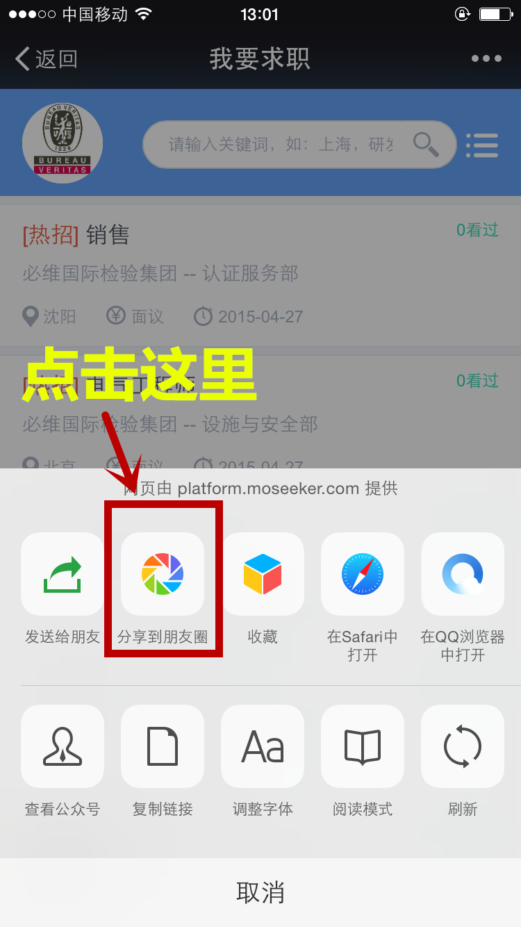 3. 将“职位列表”界面分享到朋友圈