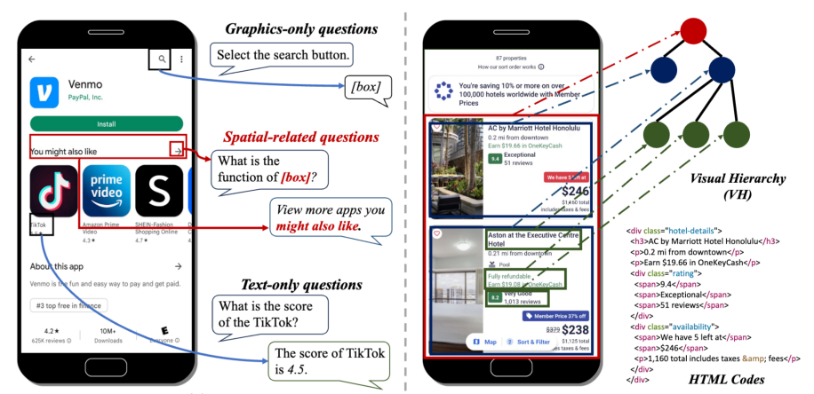 在现代社会,图形用户界面(GUI)无处不在,无论是日常使用的手机应用,还是专业的计算机软件,都是人与系统交互的重要窗口,已成为不可或缺的一部分。近年来,多模态大型语言模型(MLLM)发展迅猛,在各领域任务中展现出了巨大潜力。然而,GUI与自然图像具有着本质的区别和特殊的挑战。GUI是人工精心设计的产物,其中的图形元素,如按钮、菜单、图标等,不仅内隐了特定的语义信息,还能够通过灵活的页面布局来传达高阶语义信号;另一方面,手机屏幕中存在大量且紧凑布局的UI元素,如文本、控件、图标、功能区等等。