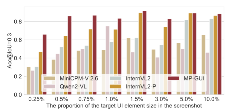 该图展示了MP-GUI在小尺寸控件定位上的出色性能: