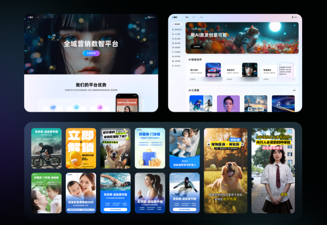 此外,在数字化广告投放逐渐成为传统保险、基金公司(机构)营销的重要方式之一的背景下,蚂蚁集团推出的“飓川&飓创平台”,是AI业务助手“支小助”在营销领域的应用。平台通过使用多种技术创建多模态的投放素材,以多模态大模型和机器学习算法实时分析素材的投放效果并产出结构化的素材生产策略,解决素材生产产量少、迭代慢的痛点。 目前已服务于数十家保险公司和基金公司,帮助机构实现数字化整合营销,缩减全流程人力成本60%以上,运营ROI提升80%以上。