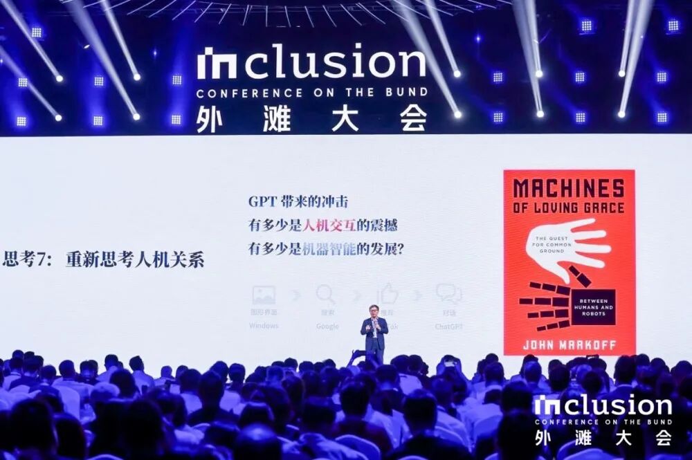2024 Inclusion·外滩大会主论坛上,香港科技大学校董会主席、美国国家工程院外籍院士沈向洋在题为《大模型时代的机遇和挑战:技术融合,产业跃迁》的主旨演讲中,谈到大模型时代人机交互方式的演变,从图形界面,到搜索、推荐、再到对话,大模型的发展将进一步推动这个迭代。