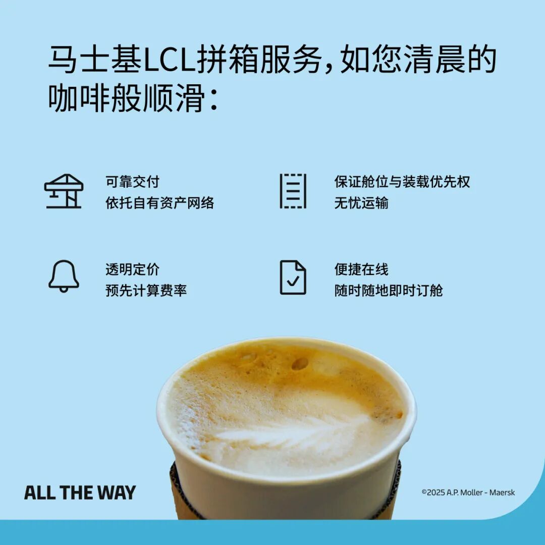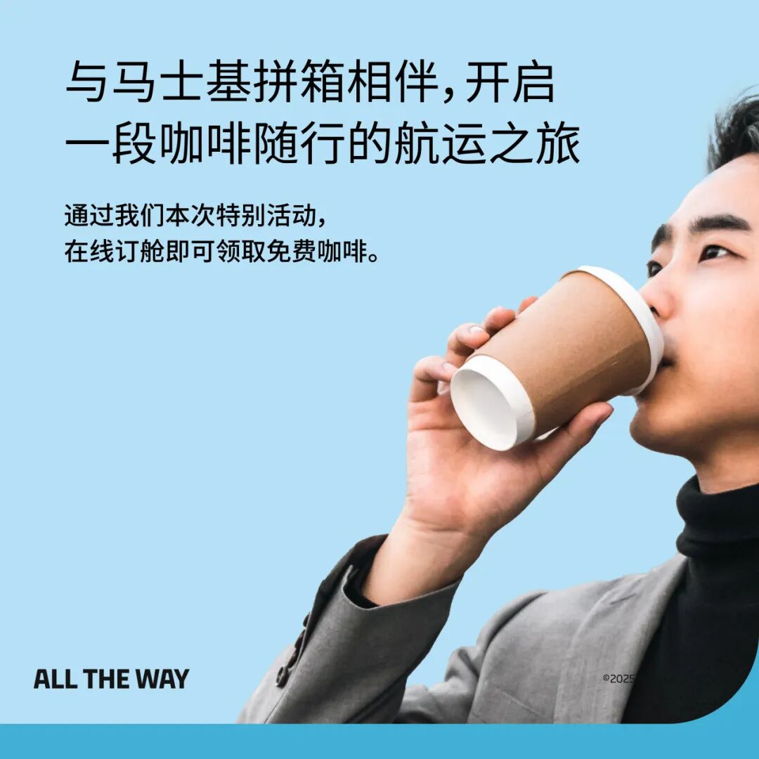 若您 2025 年至今暂未新下单,完成一次在线拼箱订舱,即可免费获赠中杯咖啡电子兑换券 1 张!
