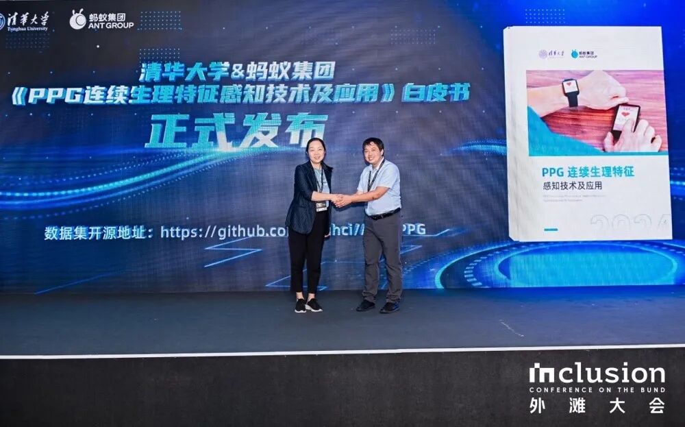 9月6日下午,在由清华大学、蚂蚁集团联合主办,中国计算机学会(CCF)人机交互专业委员会协办的2024Inclusion·外滩大会-“探索人与AI共生范式:具身交互的未来构想与可信之路”见解论坛上,清华大学教授、青海大学校长史元春和蚂蚁集团副总裁李俊奎共同出席发布了由清华大学、蚂蚁集团联合编制的《PPG连续生理特征感知技术及应用》白皮书,并同步开源了一批基于心跳识别身份的数据集。