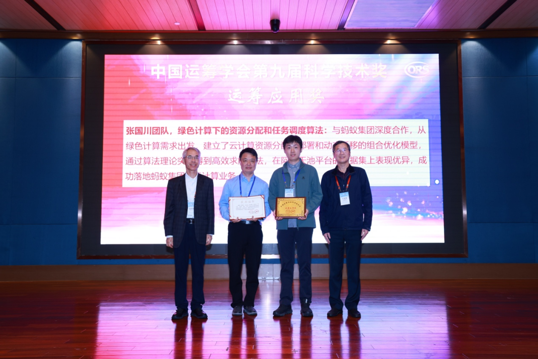 10月21日,为期4天的中国运筹学会第十七届年会(ORSC 2024)在贵阳召开。大会颁奖典礼上,浙江大学张国川教授团队与蚂蚁集团优化智能团队合作提报的项目《绿色计算下的资源分配与任务调度算法》,被授予中国运筹学会第九届科学技术奖运筹应用奖。