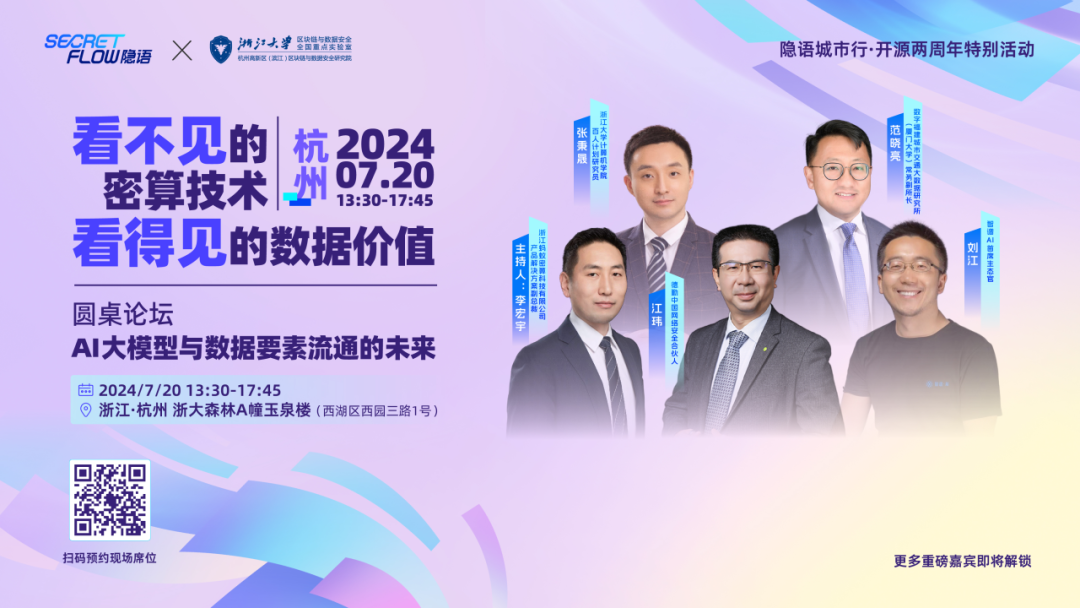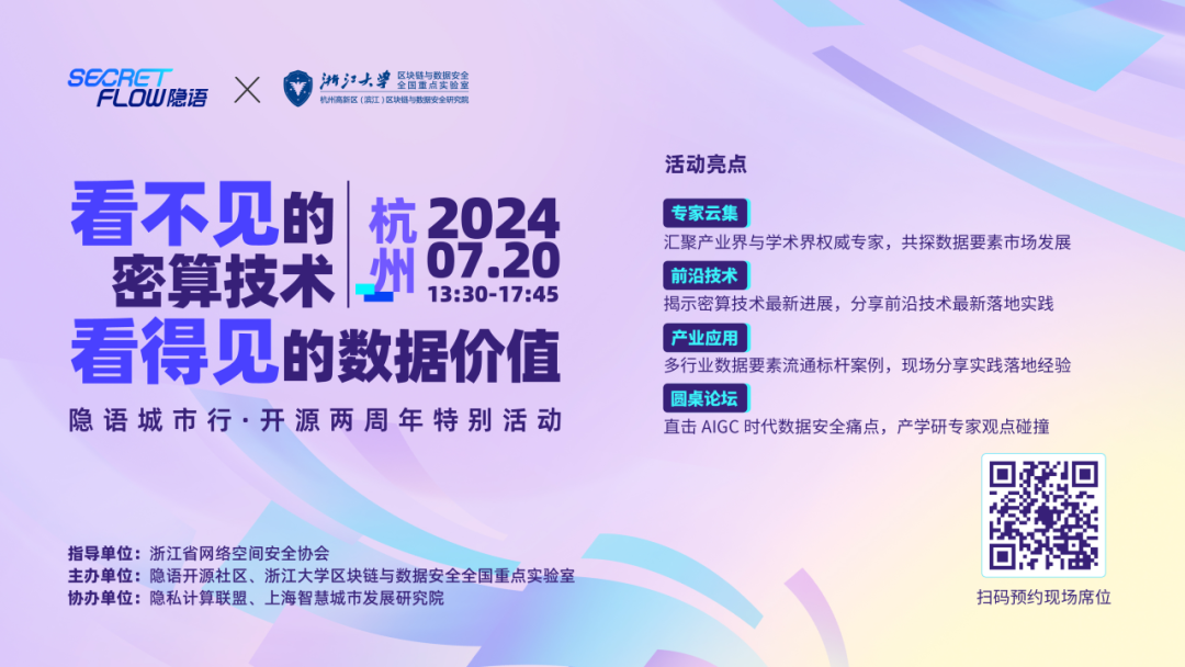 精彩不能停,在7月20日即将到来的隐语两周年活动现场,我们将继续围绕相关前沿技术进展、产业实践案例等展开深度解读!