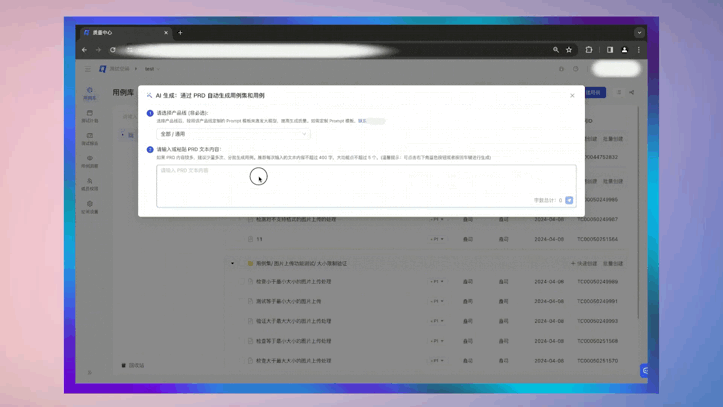 在测试阶段,可以根据PRD文档自动生成用例集和用例,也可以用自然语言生成终端用例 。