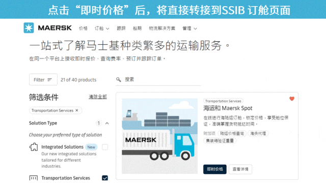 为避免询价后实际订舱时再次填写重复信息,马士基网站现将“即时价格”查询端口合并至在线即时订舱界面。您只需要点击“即时价格”,即可直接跳转到订舱页面。此次优化不仅提升询价订舱效率,也可以避免订舱通道卡顿。